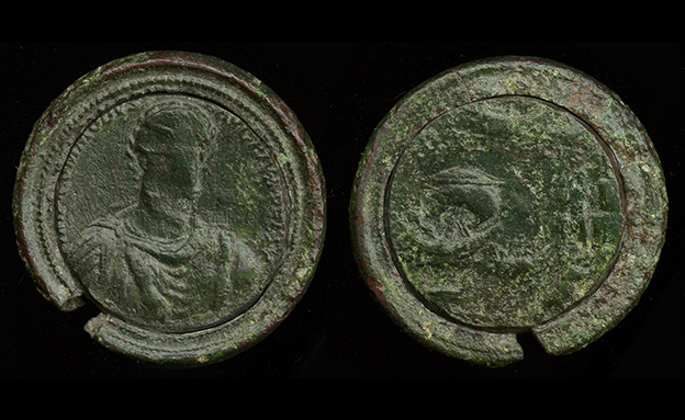Main image: Copper-alloy medallion showing the defaced bust of the Roman emperor Commodus (r. 180–192). Minted in Rome, AD 191.
