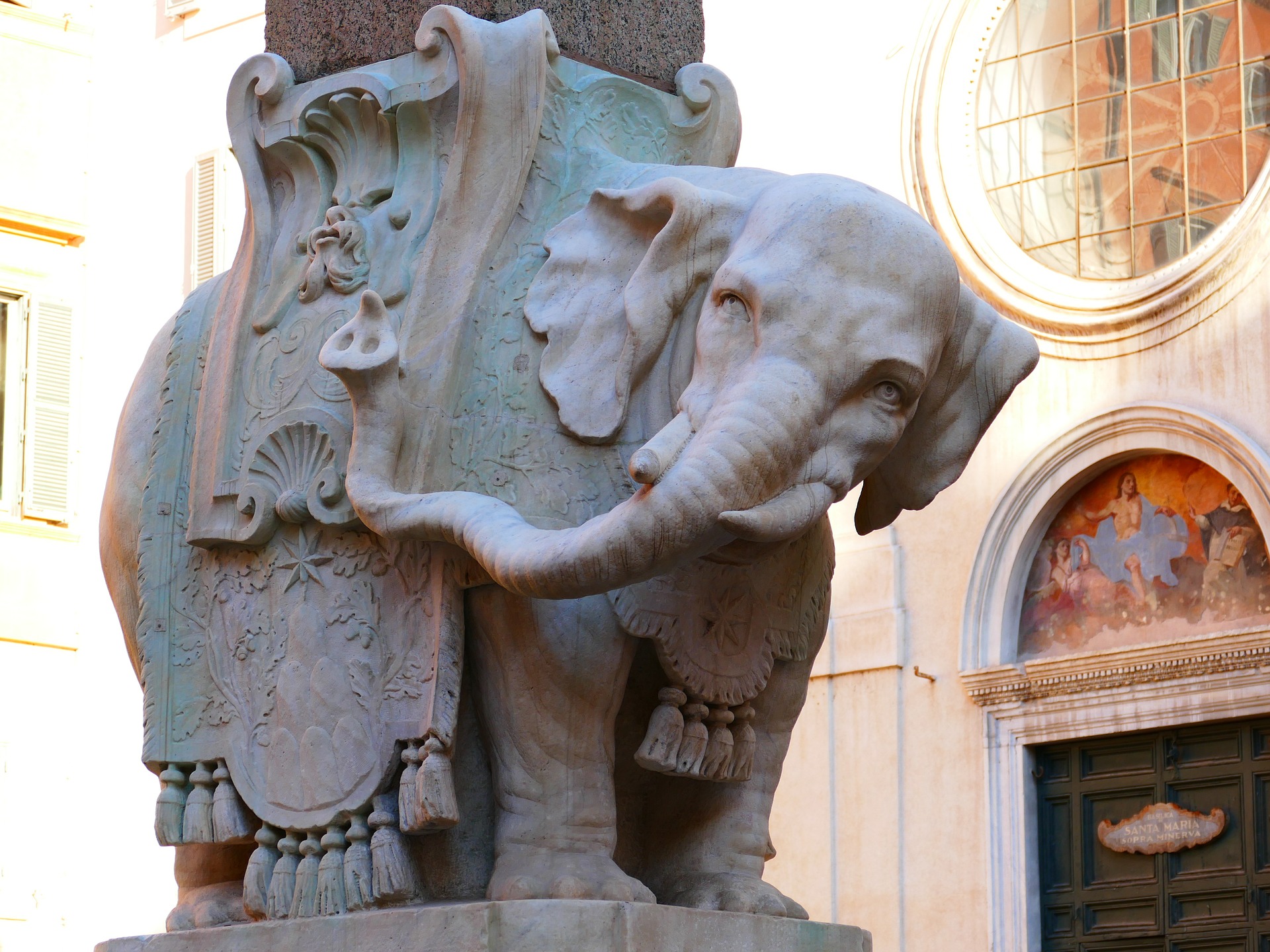 Bernini himself may not have actually sculpted the elephant – it is possible his assistant did the actual work – but there is evidence in the Vatican library that he adjusted its facial expression to be more benign rather than fierce and altered the direction the elephant was facing.