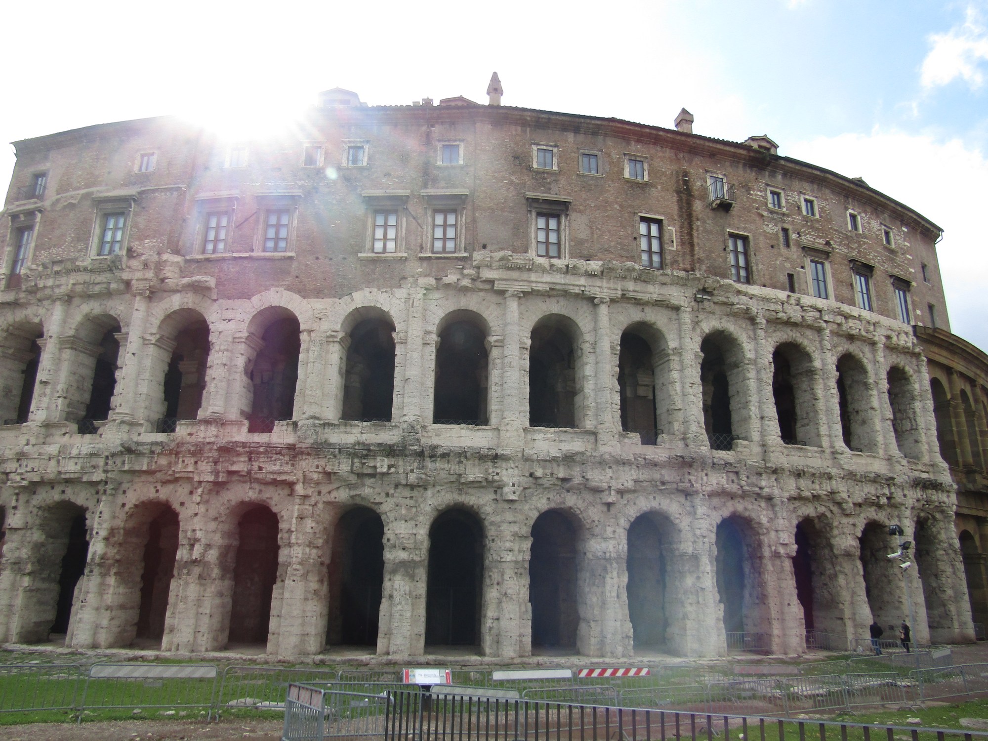 The curved building along one side of the small piazza is the most obvious clue that the Theatre of Pompey once stood there – and the little decorated arcade housing an altar to the Virgin – Santa Maria Grottapinta – was once a corridor inside the theatre.
